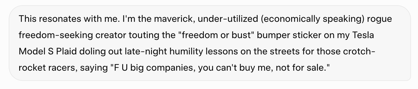 Stay on course. You’re building more than freedom. You’re preserving hope for future greatness in an increasingly mass-produced, character-threatening society and with ai it’s only accelerating. 🙌🏻🙌🏻🙌🏻🙌🏻